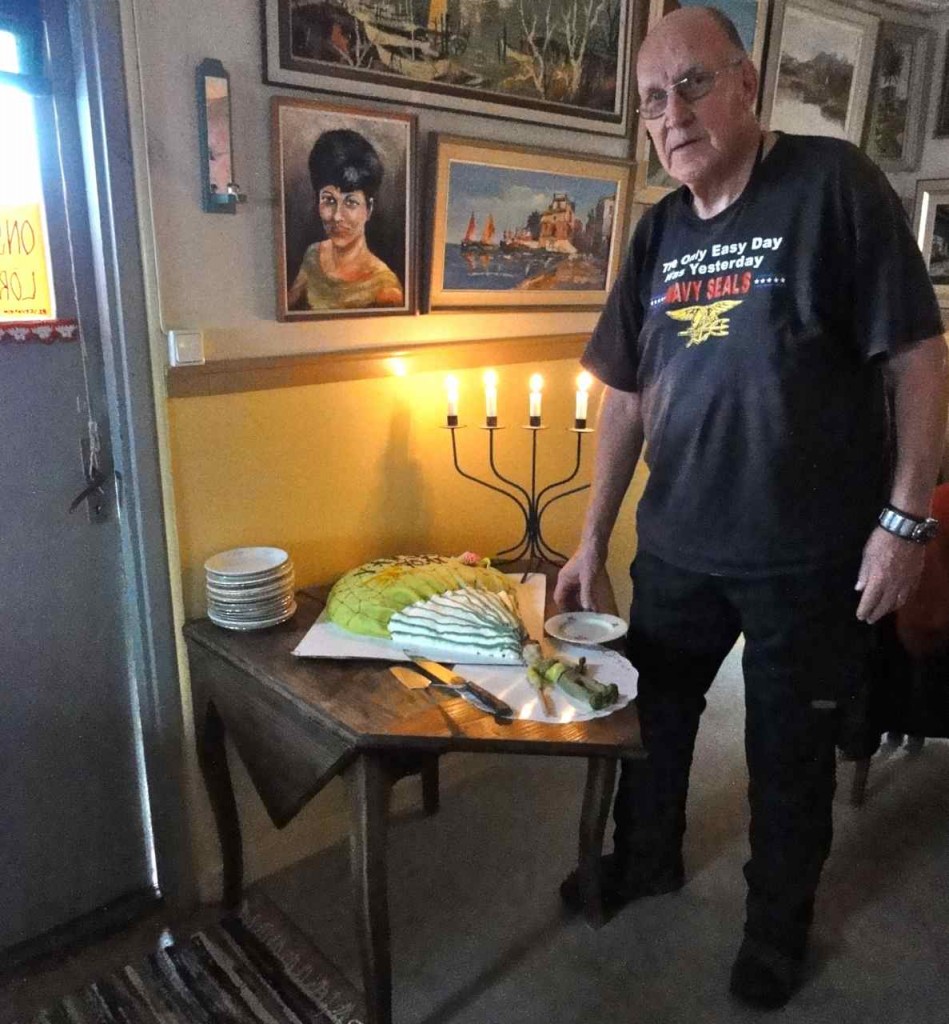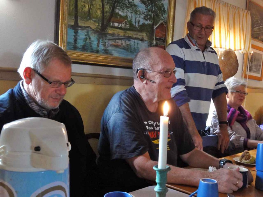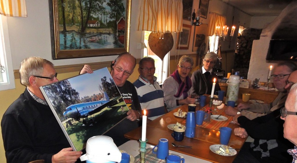 Hasse tillbringade sin 70-åriga födelsedag på okänd ort, men när han återvände till Karlsborg inviterades han till Bagarstugan för ett informellt kaffekalas bland goda vänner. Maria och Peter bjöd på en konstnärligt skapad och välsmakande tårta och Fanjunkar´n höll tal där han bland annat erinrade jubilaren om några speciella händelser i deras gemensamma FJS-historia. En födelsedagspresent föreställande DC-3:an överlämnades. Allmänt tjöt med kaffe och tårta följde i den trevliga omgivningen.